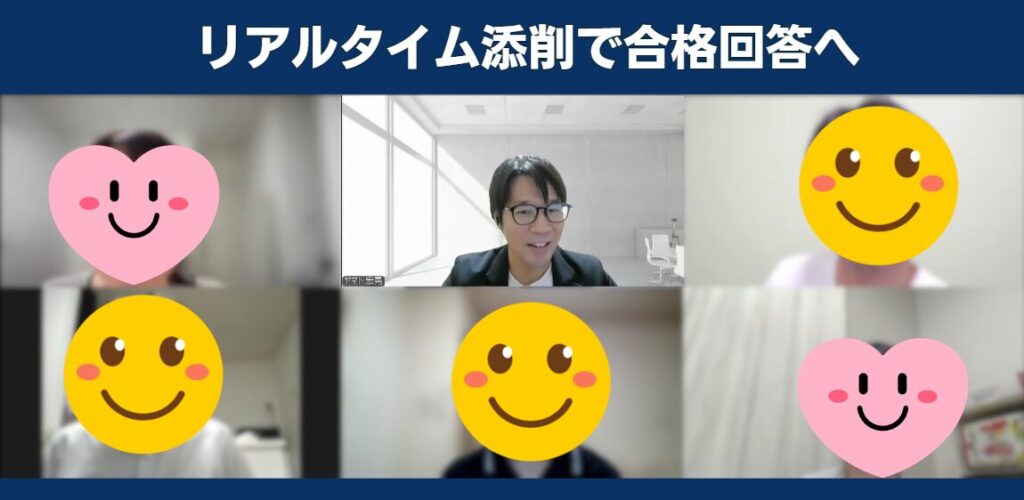 少人数(1~4名)/実践型/その場で“合格ラインの回答”が一つ完成します。