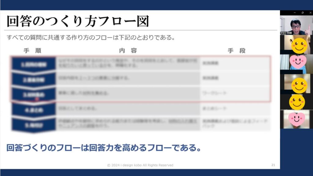 評価される回答の構造・考え方を学びます。